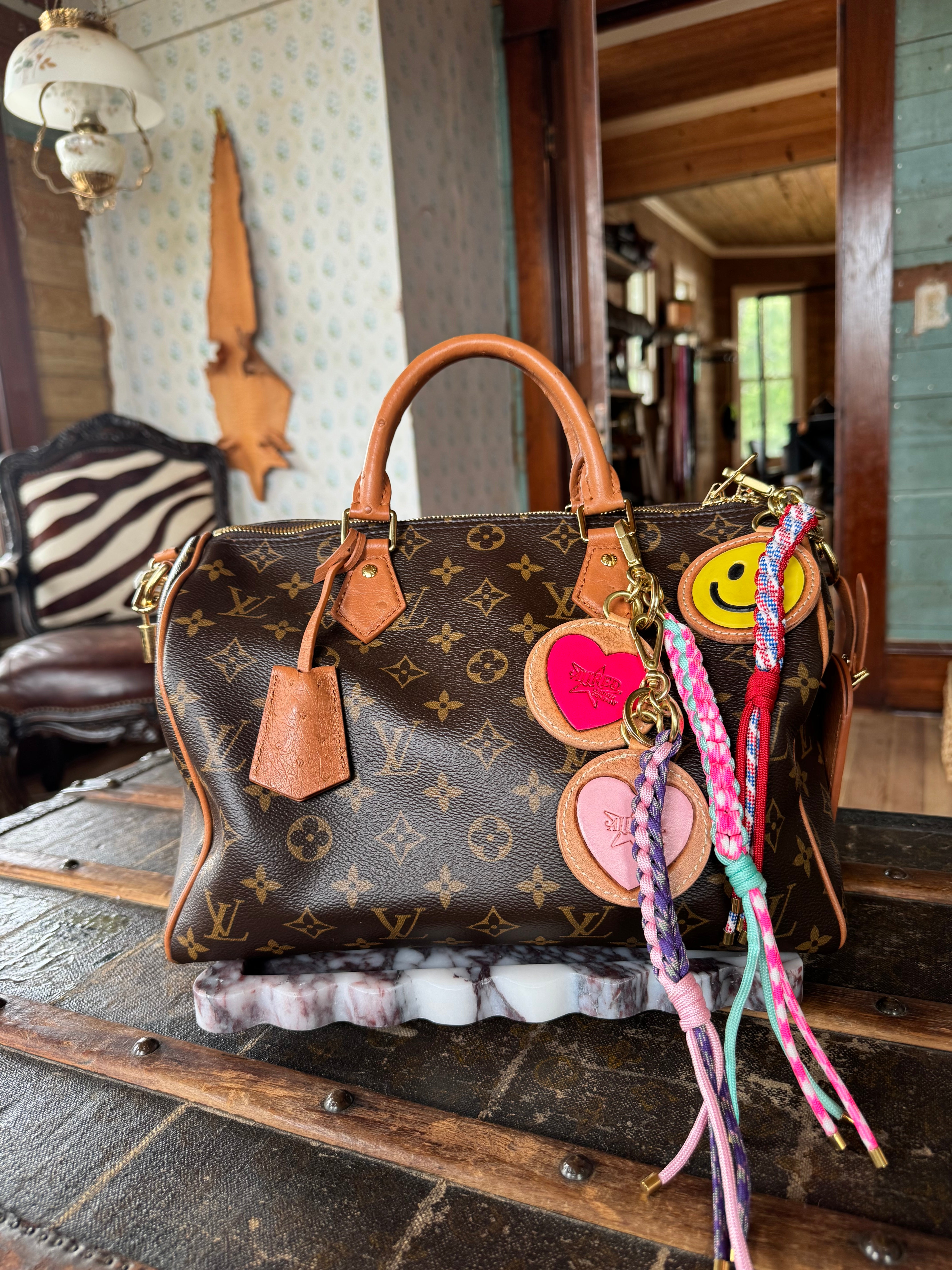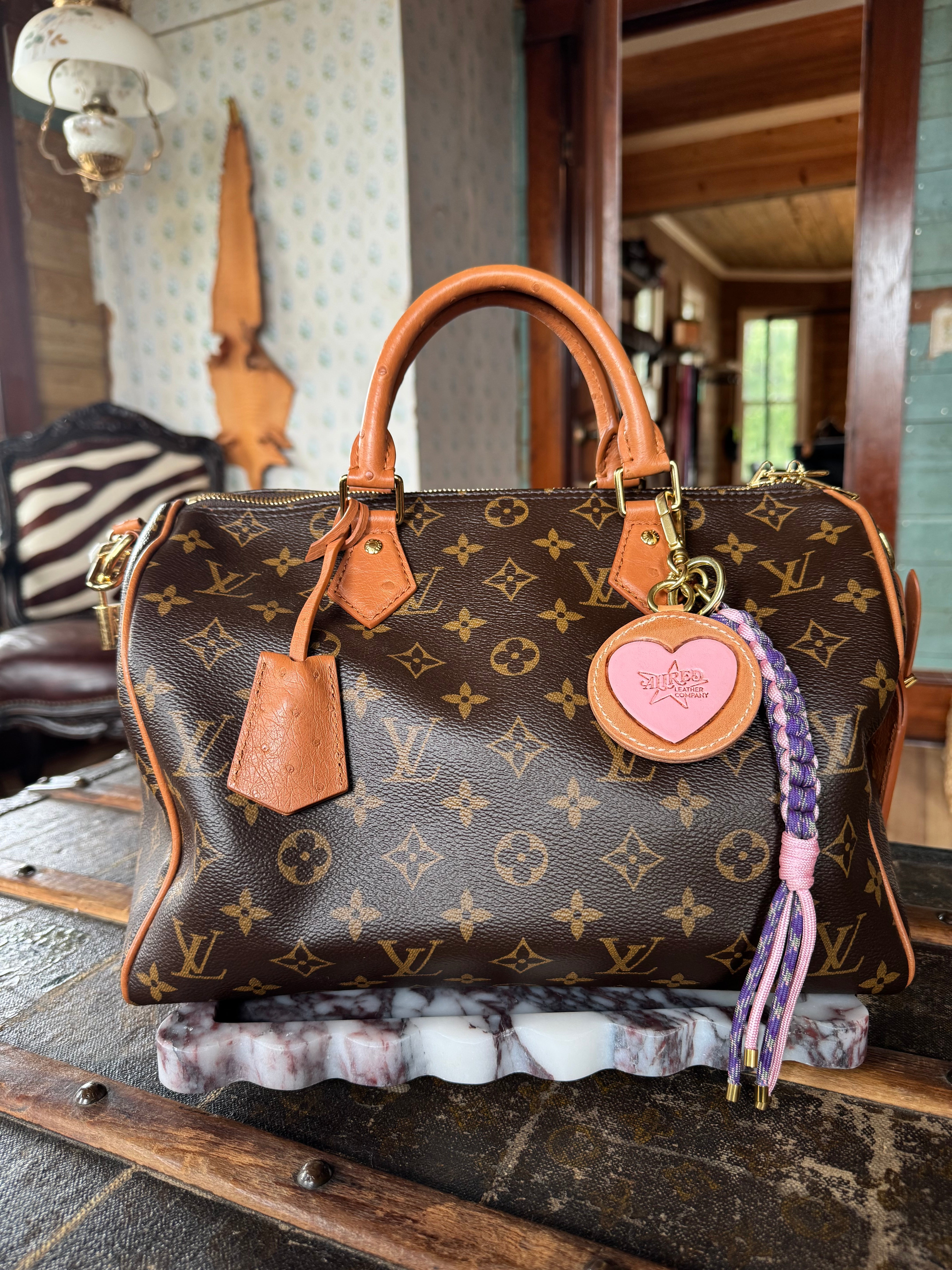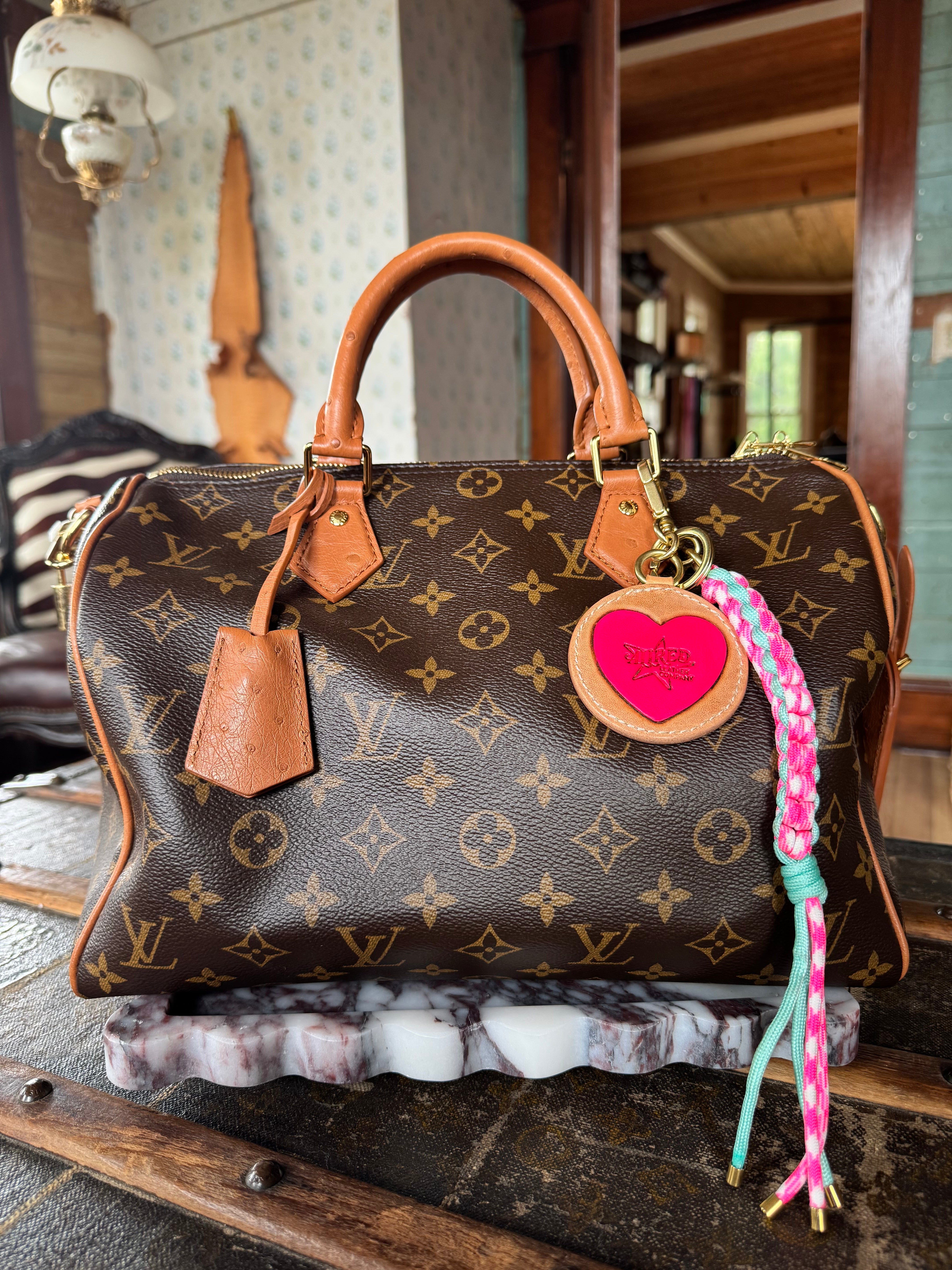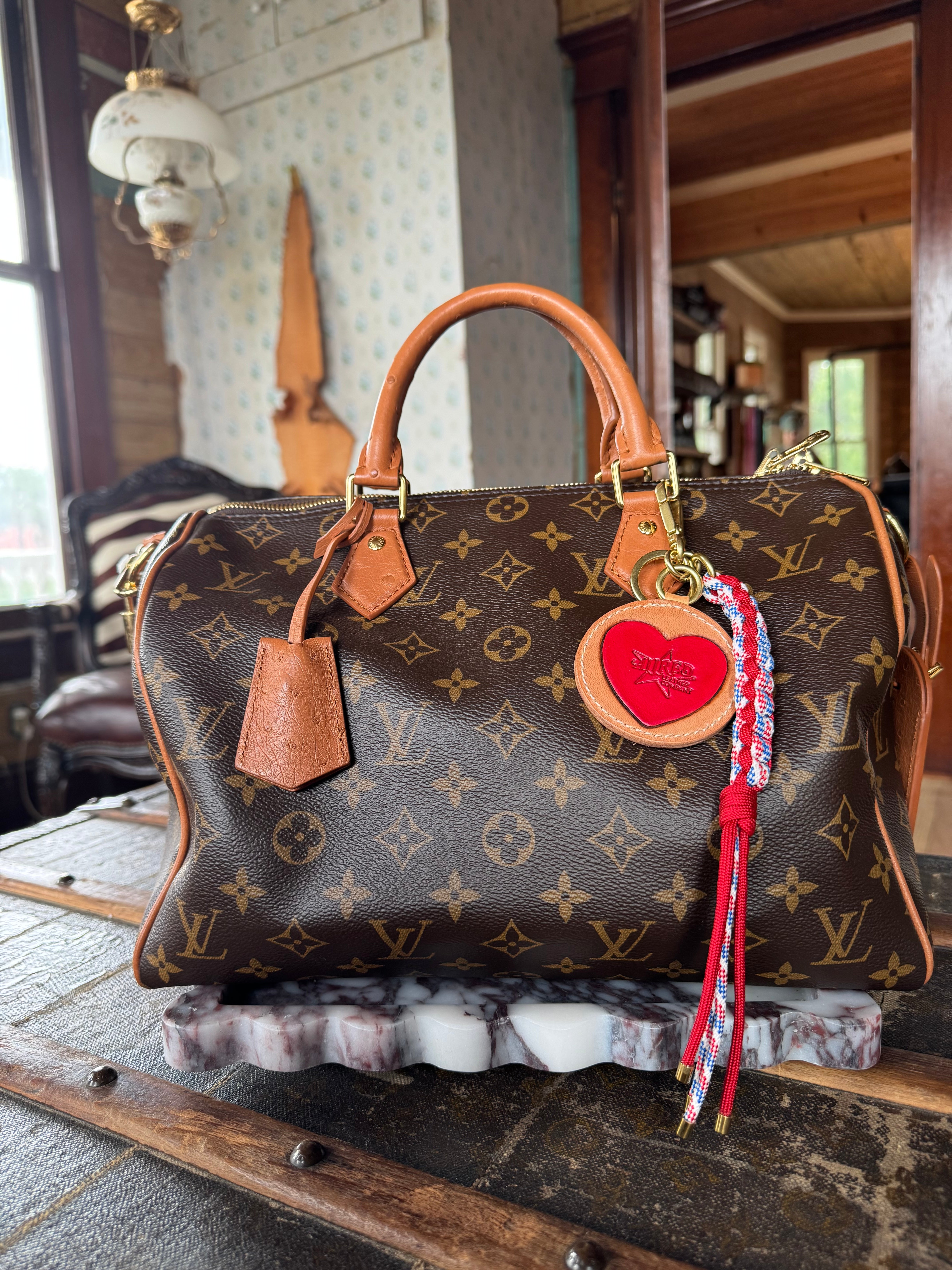 These Allred Leather x Leatherandvodka Happy Heart Charm Starters are handcrafted with precision, intention, and artistry, creating a bold and playful accessory that instantly elevates any bag. Each charm is hand constructed reflecting the unmistakable craftsmanship of Allred Leather paired with the elevated Western luxe aesthetic of Leatherandvodka.