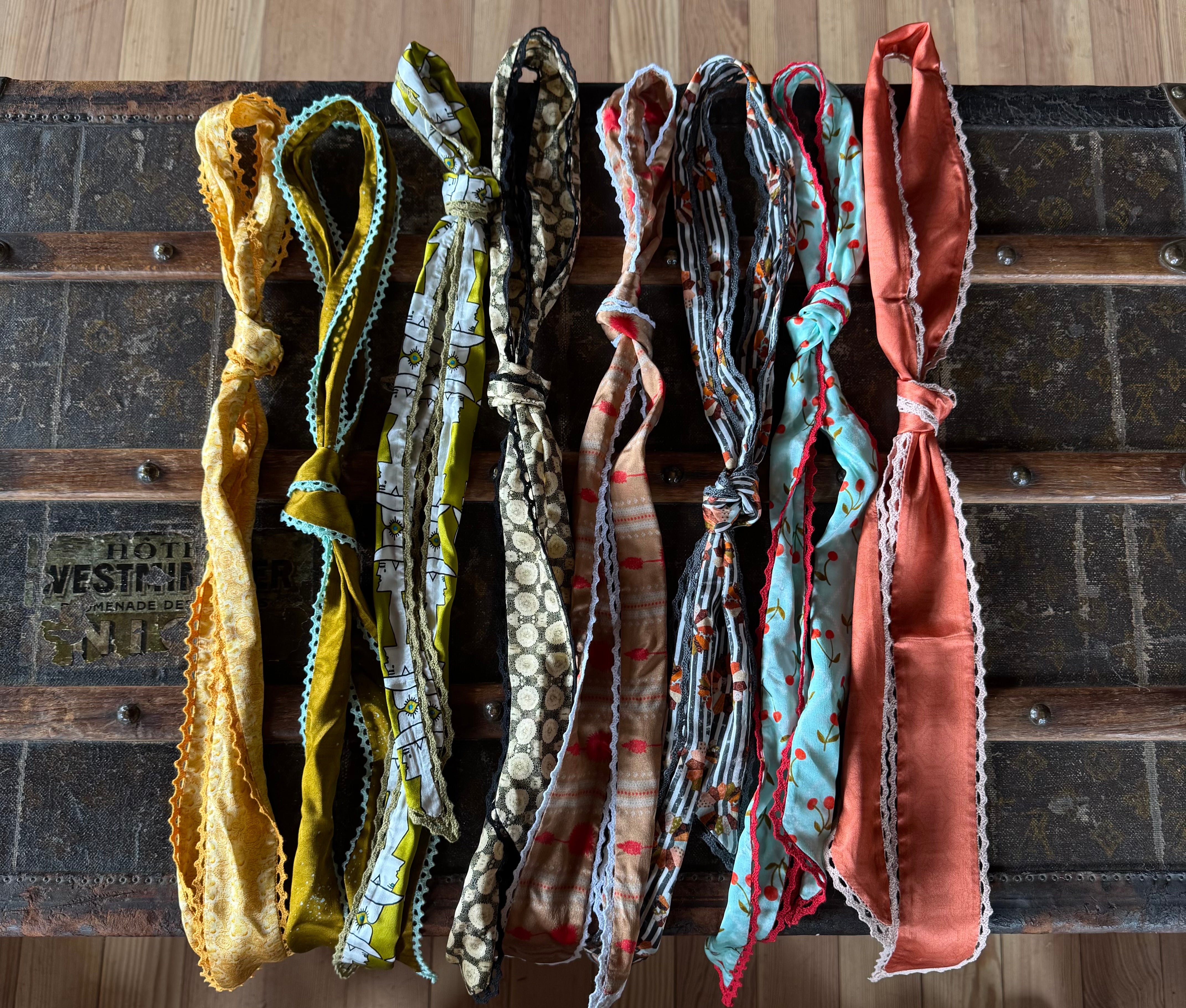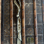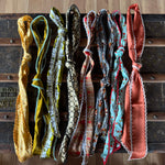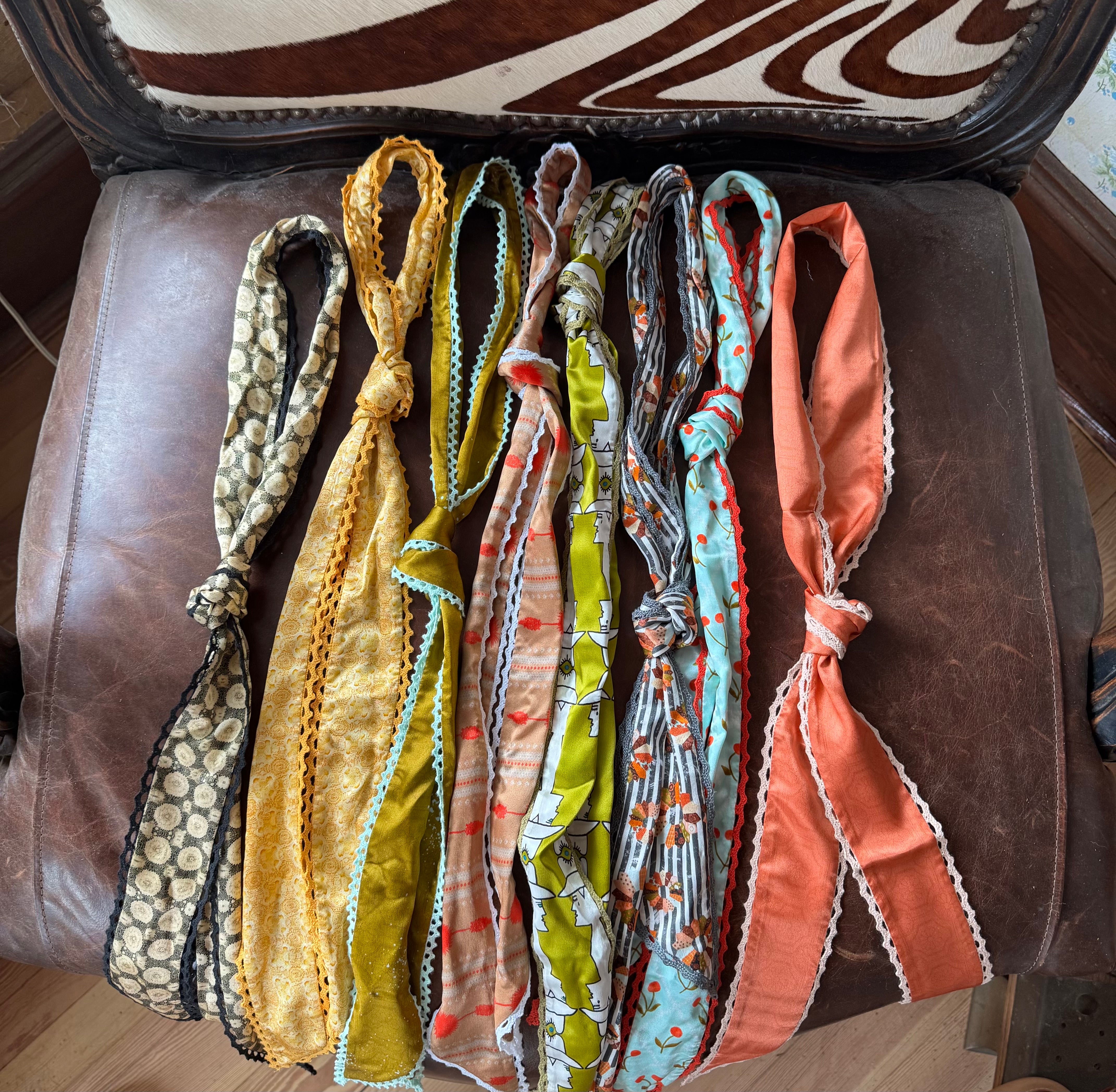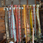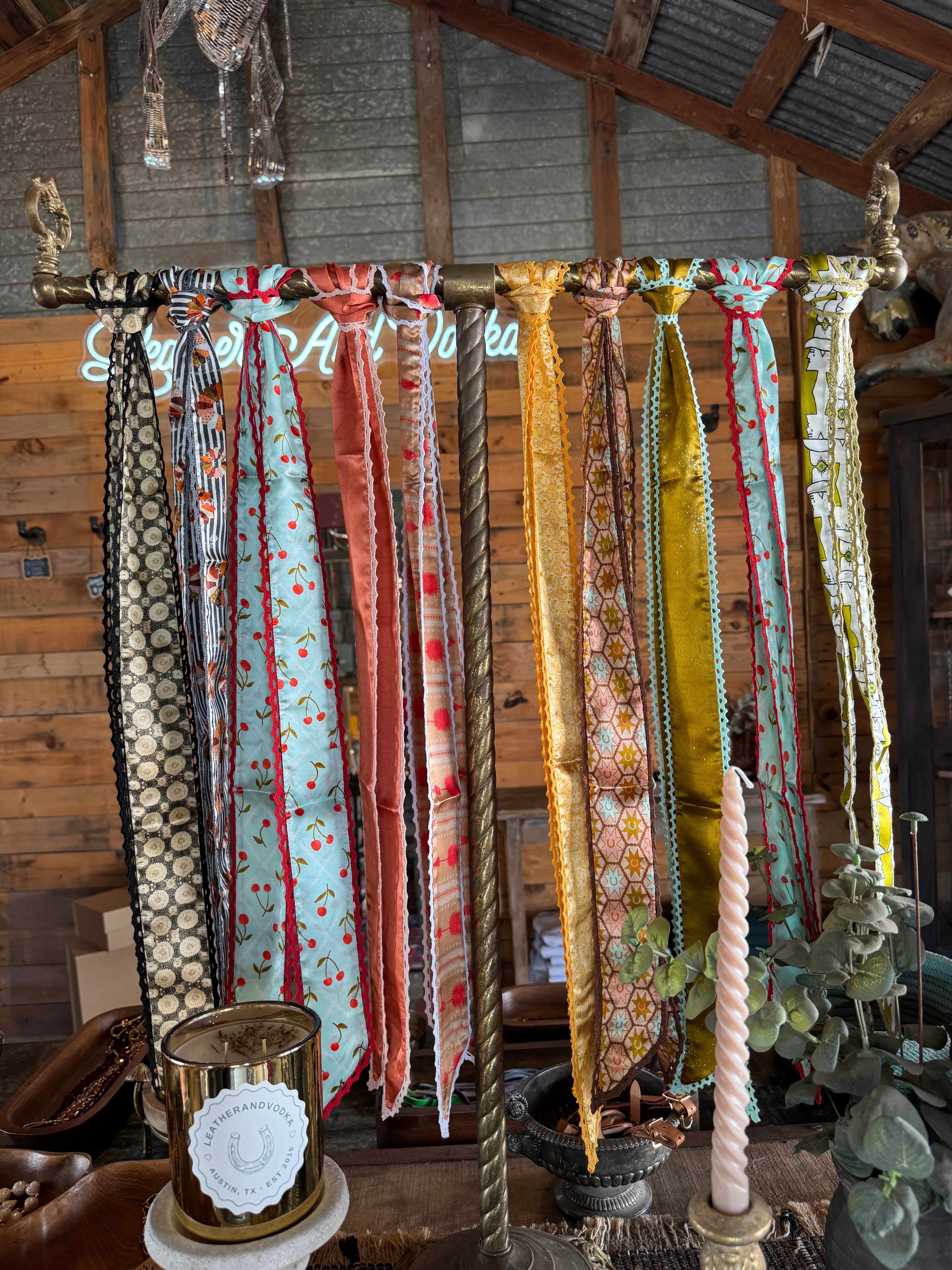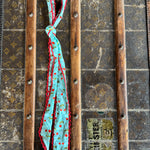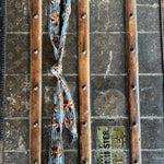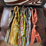 This silk twilly features custom designed artwork accompanied by a crochet trimmed edge by Allie Falcon herself, a southwestern artist known for her unconventional style. Each twilly highlights hand-drawn desert-inspired artworks and funkified western designs, capturing the essence of the cowboy world that surrounds Allie in her home state of Texas. The perfect addition to any bag!