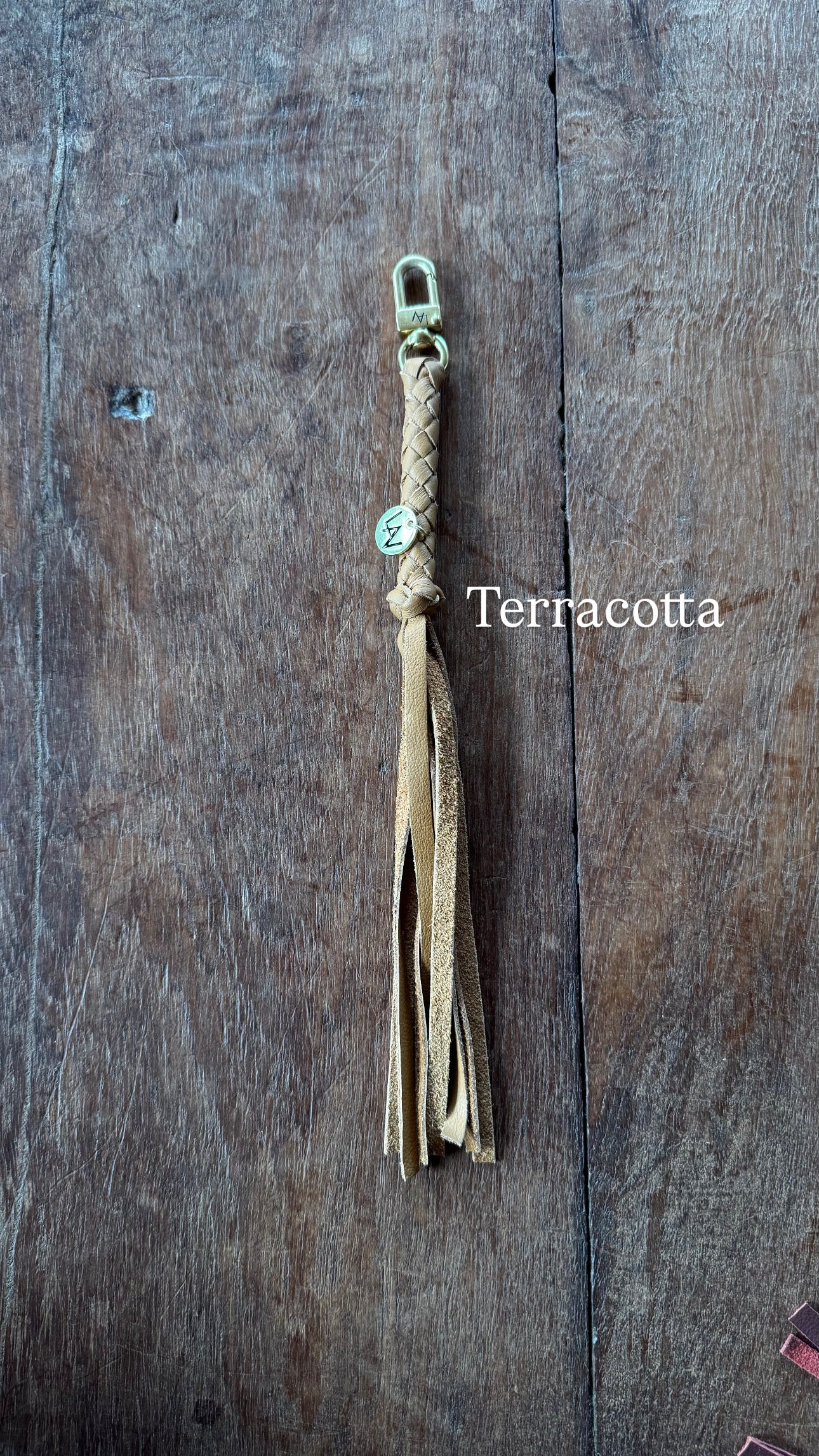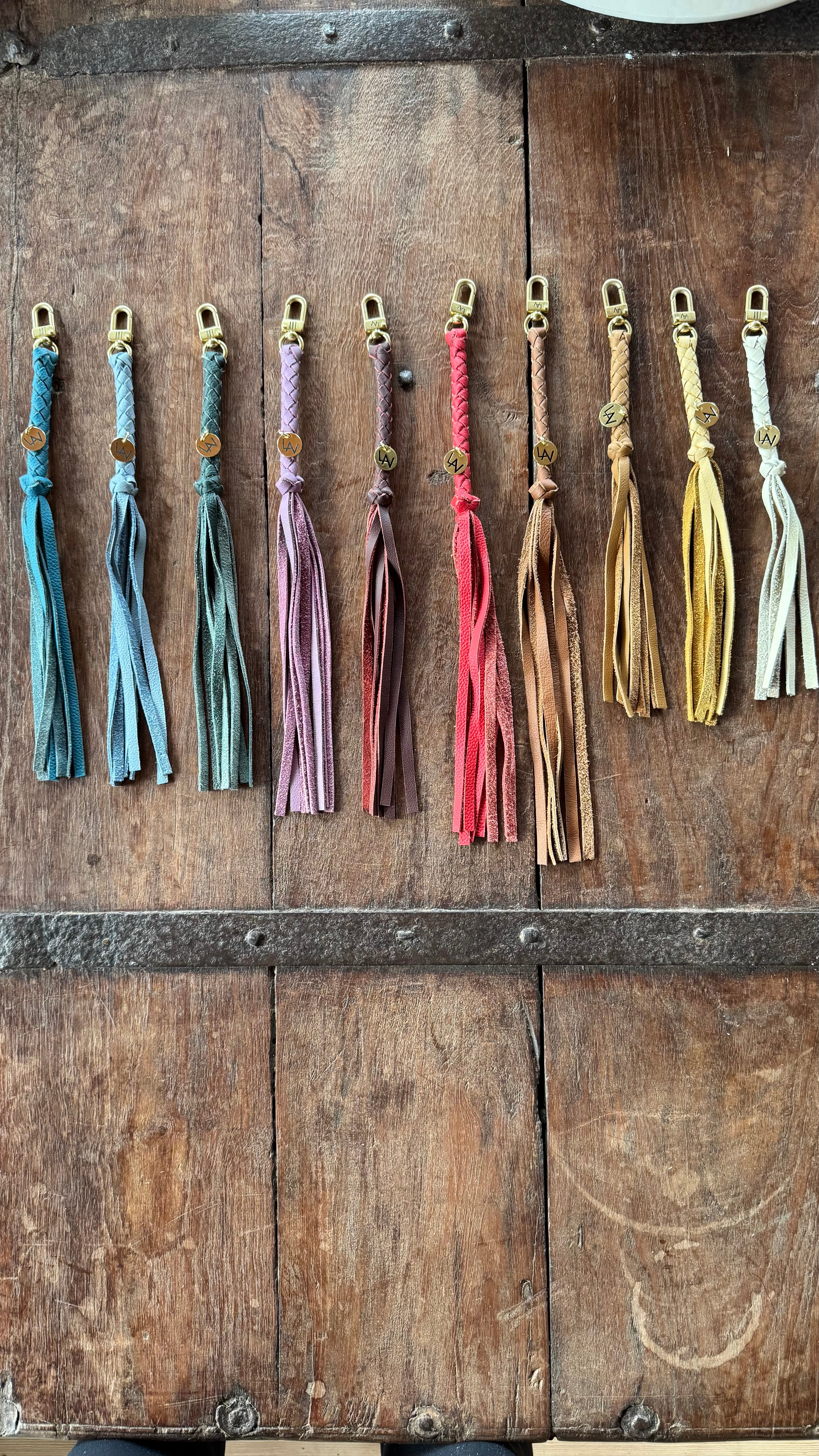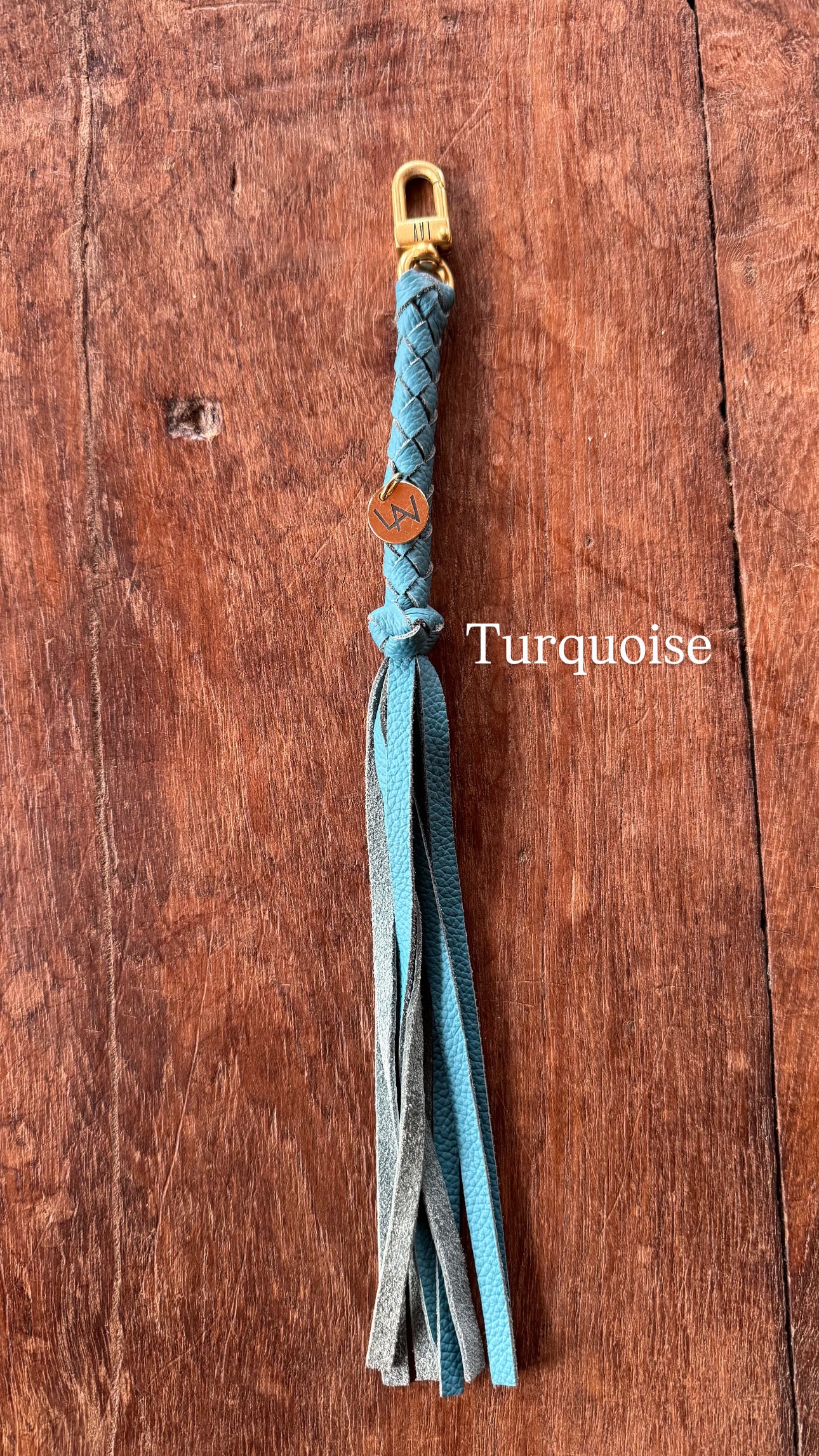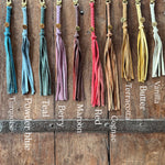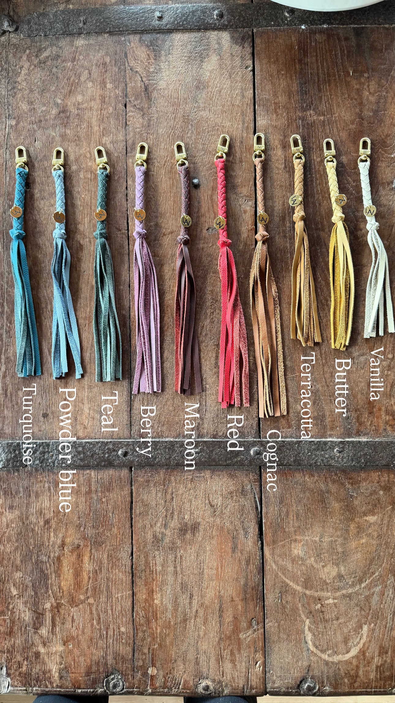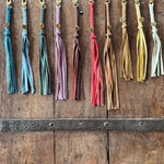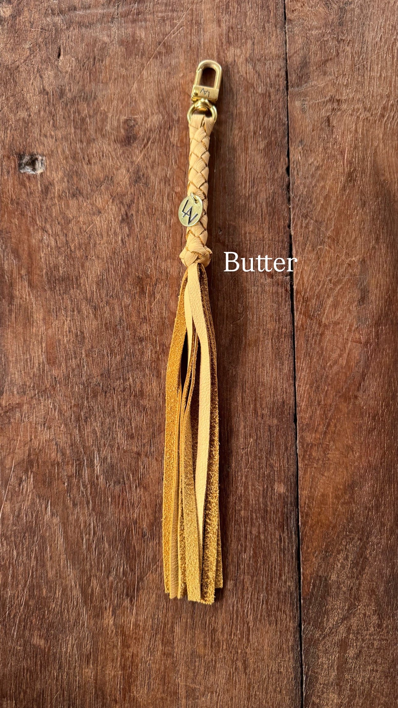 This specialty Leatherandvodka hand braided snap-On is attached to a golden all brass snap, creating a stylish and functional accessory. Pictured Snap-On's measure to 3 inch braid with 7 inches of fringe, adding an eye-catching touch to your items. Attach this braid anywhere for extra flair or to easily locate your items.
