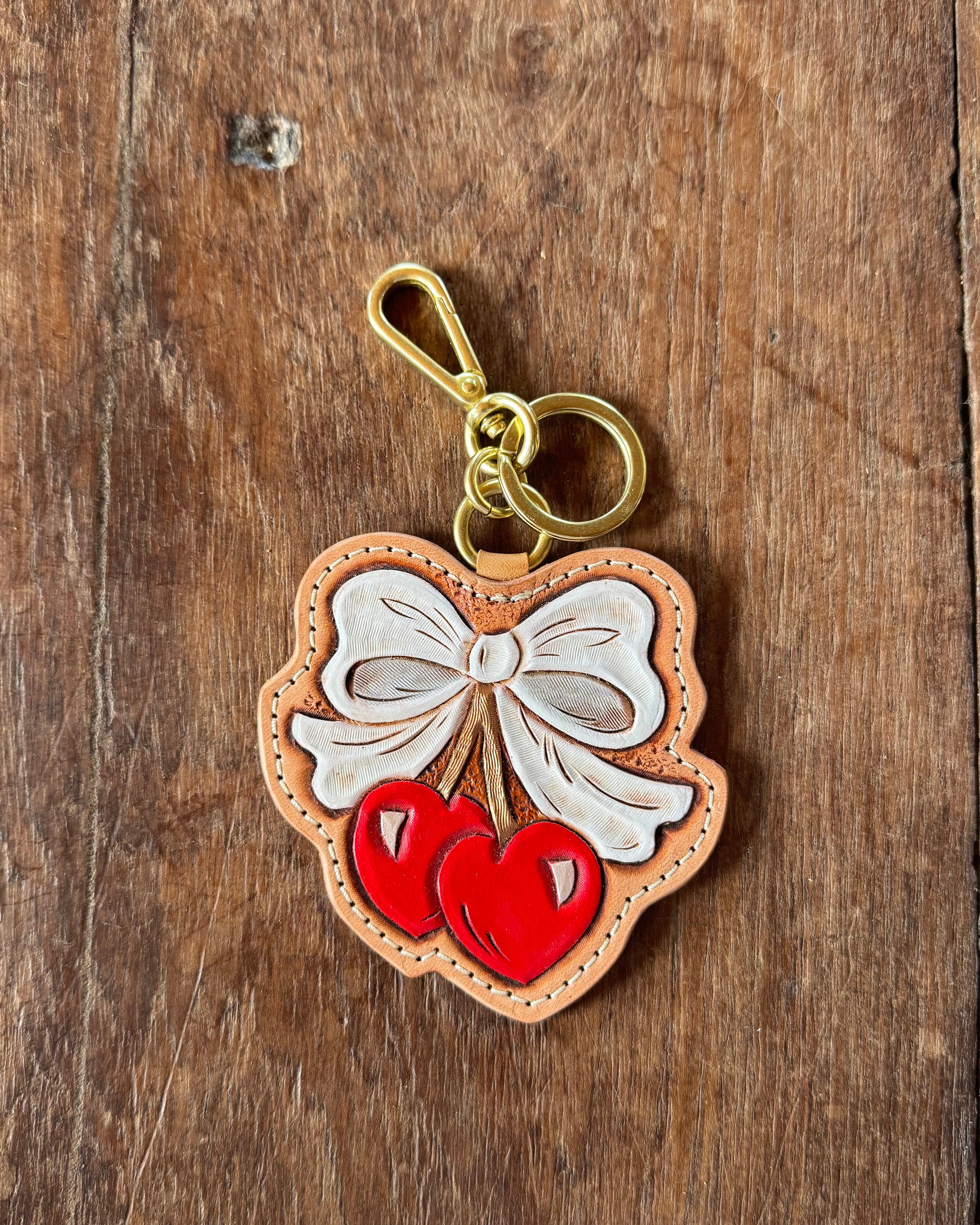 These Allred Leather x Leatherandvodka Cherry Bow Bag Charms are handcrafted with intention and artistry, bringing a sweet, playful touch to any bag. Each charm is hand tooled and hand constructed, showcasing the craftsmanship that defines Allred Leather and the elevated design aesthetic of Leatherandvodka.