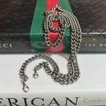 This removable antique silver-toned chain enables both shoulder and crossbody carry, crafted with lobster claw clasps at each end for easy attachment. The chain was taken from new authentic Gucci Dionysus bag and measures approximately 50" long from clasp to clasp, providing the perfect length for comfortable wear.